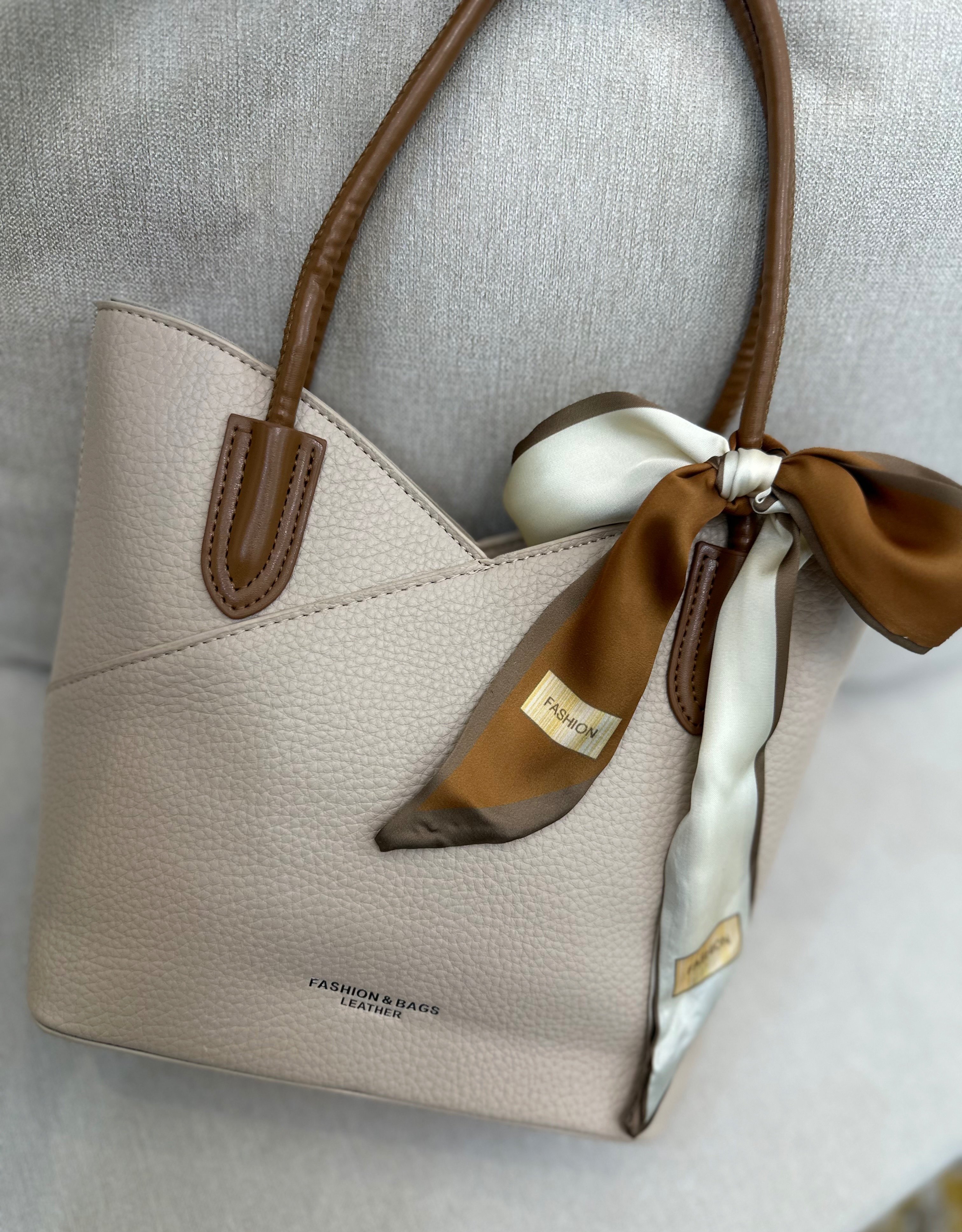 - الوشاح الحريري المميز: يمنحك مظهرًا مختلفًا ومتميزًا ويزيد من روعة تصميم الحقيبة بشكل فريد.